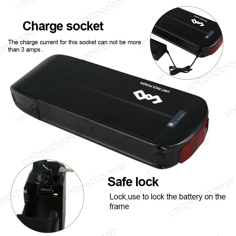 .image for UPP Rear Rack eBike Battery 48V 15.6Ah lithium ion Battery supply 48V 750W ebike Bicycle